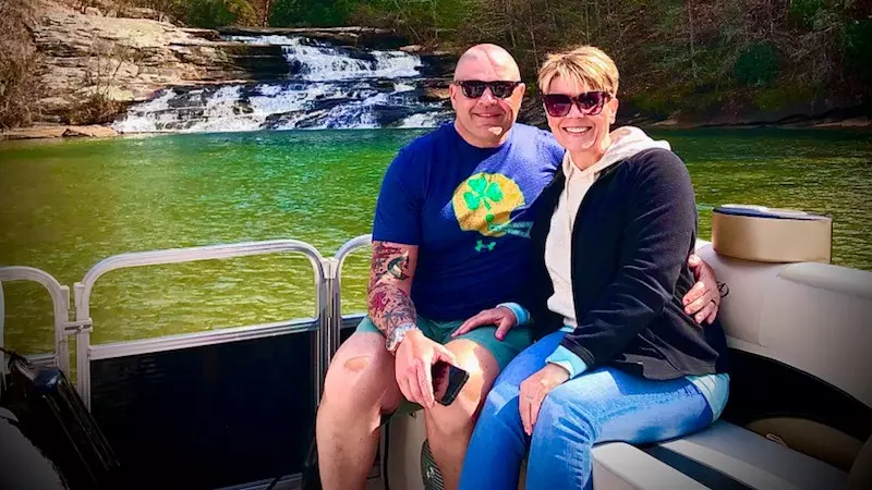 It was 2011, and Hastings and her husband were slalom skiing in Oklahoma, which was experiencing a severe drought at the time. Shallow ski lakes are typical for 3-event skiing, with the water often only 5 to 8 feet deep, but due to the drought it was at a dangerously low level. At the turn buoys, positioned closer to shore, the water was only 2 to 3 feet deep. Falls are rare in competitive slalom skiing, although accidents still happen. As Hastings came into a turn buoy, the ski slid out from under her and she was fully ejected. Her ski landed on shore, her head tunneled under water into the muddy bottom and she remembers Jamie pulling her out of the water, face down in the Oklahoman red dirt clay, a contact missing from an eye. “I was totally out,” she says.