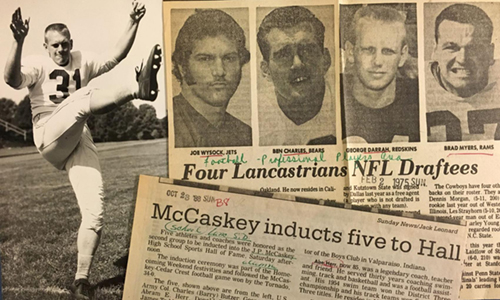 George played all sports from little on, and he loved every minute of it. He graduated from high school in 1955 and was offered a full football scholarship by many large colleges and universities. He ended up staying in our hometown at a private all boys college called Franklin & Marshall. It was affiliated with a Protestant seminary. He played not only football but basketball, baseball, and golf for the college. In football he made All-East and then Little All American. He was honored with the Maxwell Award in 1958 in Philadelphia.