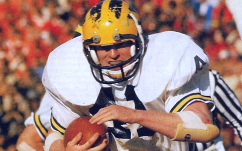 Rob narrowed his college choice to Ohio State and Michigan—Woody Hayes and Bo Schembechler. Woody would visit Fremont and sit with Rob for hours talking Civil War history and military strategy, favorite subjects for each. He told Rob that he could play as a freshman. Bo said simply: “You’ll never be as great as you are right now. We have six halfbacks already at Michigan. If you come here, you’ll be number seven. Anything that happens after that is up to you.” Instantly, a father-son relationship developed between Rob and Bo.