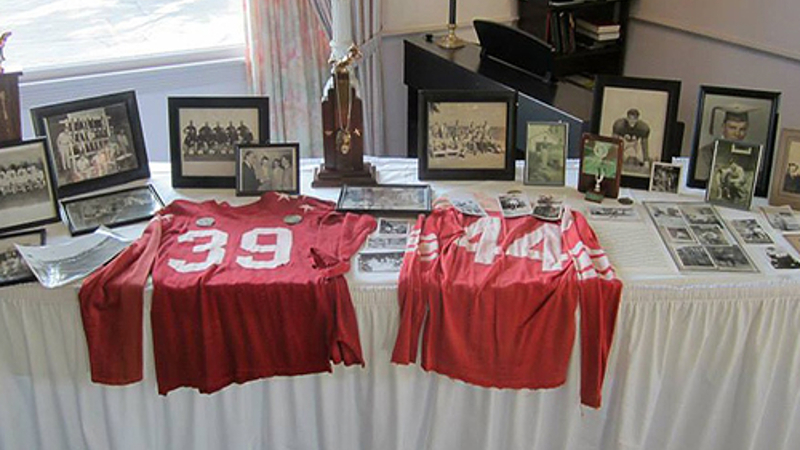 Ed always preached the life lessons he learned playing football. He loved the game and the bonds it helped him forge with players he encountered on both sides of the line, but he also understood the physical toll it took on his life. A product of his persevering generation, Ed lived his life with courage, strength, and occasional frustration, sharing his love for his family and friends, as well as capitalism and country, with all willing listeners.
