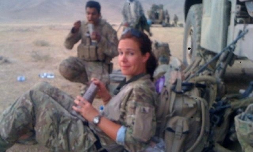 While deployed to Iraq and Afghanistan she experienced significant injuries, including two events that were later identified as causes of major brain trauma. In one instance, she was inside a building that was hit by explosives and large pieces of rubble hit her on the back of her neck. Another time she was too close to an RPG blast and was thrown up against a door jamb, causing her head to snap back and hit hard. Both times, she did not give the collisions much thought and continued in the action.
