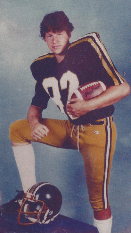 As he grew in size, strength and talent, so did the intensity of the games. By the time he reached junior high he traded Quarterback for tight end. He loved to run down the side line and leap for that touchdown pass. He was the starting tight end for Warren Central High School in Indianapolis from 1981 to 1983. Oh, how we all cheered. We were all so proud, including his girlfriend Kim and later in life his wife of 23 years. There was no way of knowing we were watching him travel down a path not to glory days of football, but the path that would someday lead him to glory…by the way of hell.